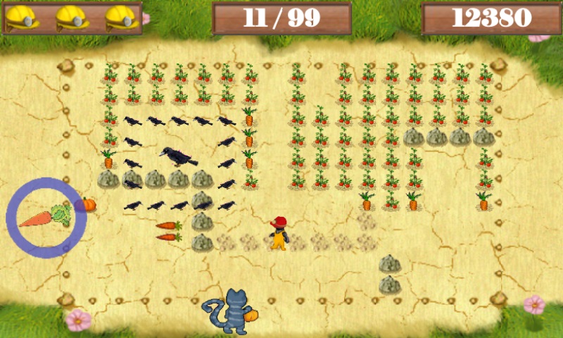 Cross-platform game application where the player must overcome obstacles and sow a designated plot of land.